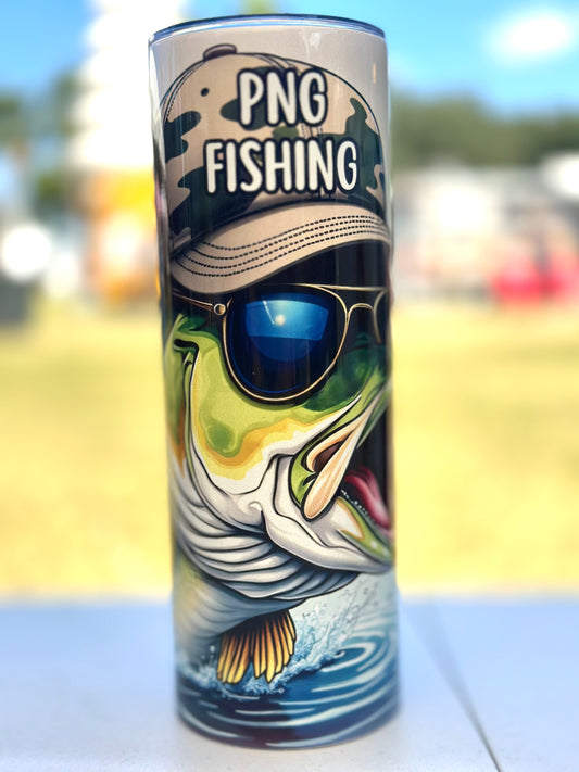 PNG Fishing Glitter and Leopard Indian Head Tumbler